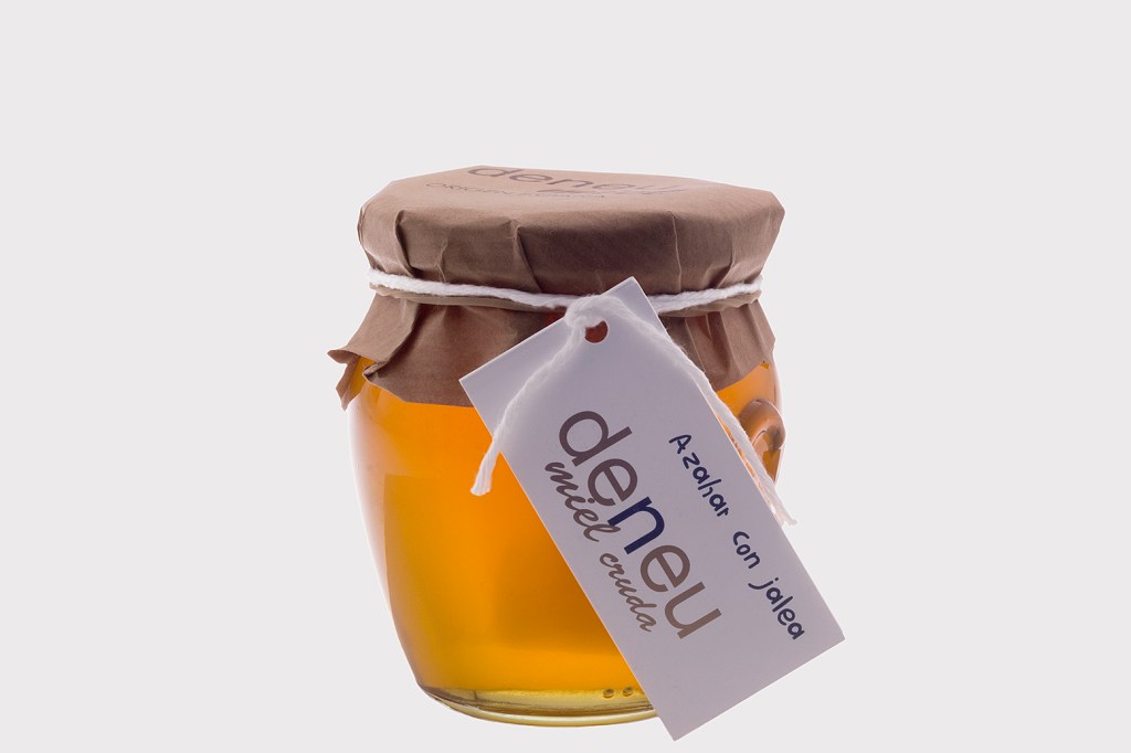 MIEL DE AZAHAR CON JALEA. Además de la propiedades de la miel de azahar, el aporte de jalea contribuye al fortalecimiento de las defensas.